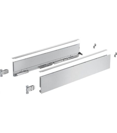 Système de tiroir AvanTech YOU Set Zarge 77 mm • Réglage intégré des hauteurs et des côtés • Acier revêtu de poudre Set se compose: • 1 pièce Zarge gauche et droite • 2 profils design en tsar • 2 pièces de fixations frontales pour visser • 2 stabilisateurs de paroi arrière • Matériau de fixation ...