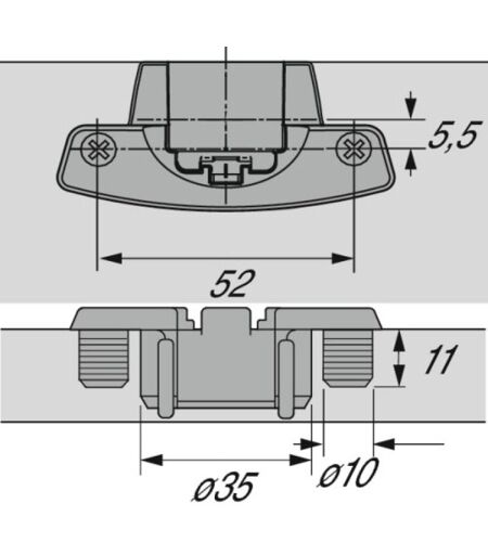 Hettich - Boîtier à enfoncer 180° - 230° - 270° pour porte de 19mm entraxe 52mm finition nickelé - Selekta Pro 2000