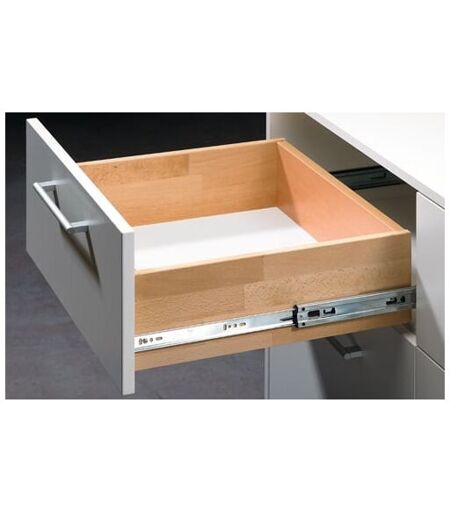DESCRIPTION GÉNÉRALE Coulisse à billes HETTICH KA 5632, longueur de 300 mm, capacité de charge de 45 kg, largeur de montage de 12,7 mm. Utilisée pour tiroirs en bois, elle offre une sortie totale avec butée de sortie et frein de maintien. SPÉCIFICATIONS TECHNIQUES Longueur : 300 mm Largeur de montage : 12,7 mm Capacité de charge : 45 kg Profondeur minimale de caisson : 304 mm Hauteur de la coulisse : 40 mm Surface : galvanisée Matériau : acier COMPATIBILITÉ ET ACCESSOIRES Compatible avec des tiroirs en bois, convient pour variantes de fonds à rainures, à recouvrement ou rapportés. INSTALLATION Installation facile grâce au levier de déverrouillage permettant de retirer et remettre le tiroir sans difficulté. ...