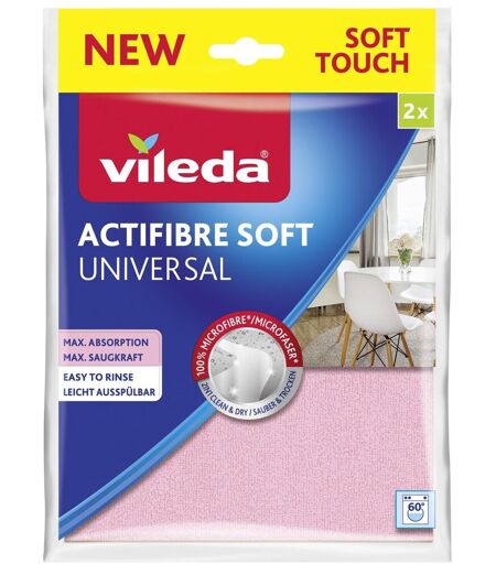 Vileda 4023103240810 Chiffon de nettoyage Microfibre, Polyuréthane Gris, Rose 2 pièce(s)