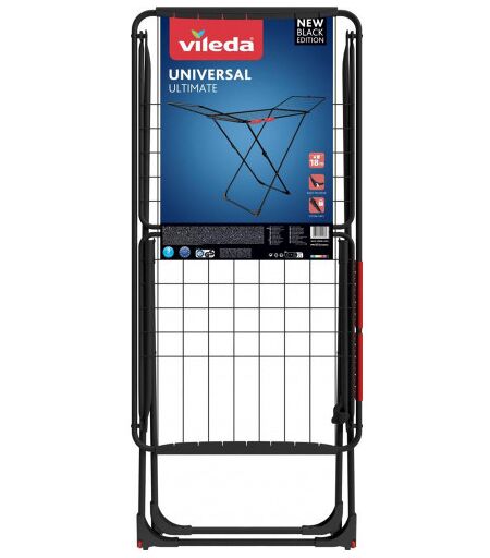 Le nouveau séchoir pliable Vileda Universal est le produit idéal pour le séchage pratique et portable du linge • Le châssis du séchoir pliable est fabriqué en acier robuste pour la stabilité et la durabilité, de sorte que le séchoir puisse supporter un poids considérable sans se plier • Le séchoir pliable Universal est un séchoir tres fin, léger et pliable • Déployez les ailes du séchoir pliable Universal pour plus d'espace de séchage ou rétractez-les pour de plus petites quantités de linge • Vous pouvez facilement le rétrécir a une taille pratique pour l'adapter a l'intérieur ou derriere la plupart des armoires • Utilisez le niveau principal comme une seule zone de séchage ou dépliez les ailes pour plus d'espace et une surface totale de séchage de 18 metres • Le séchoir a linge pliable Universal est mobile grâce a ses roulettes inférieures pratiques, meme lorsqu'il est entierement chargé de linge Les images peuvent différer du produit/article original.> ...