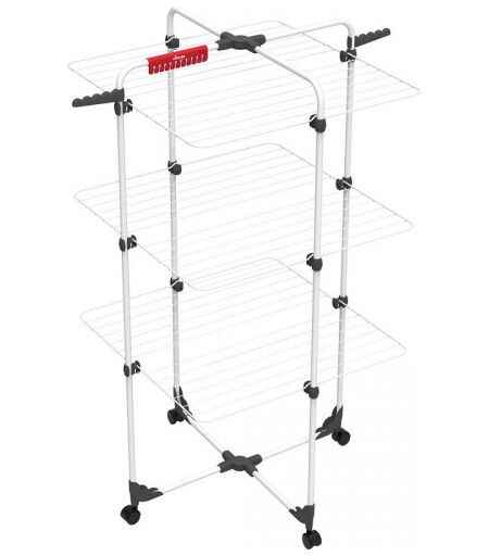 Cet étendoir à linge en acier est doté d'étages avec des plateaux indépendants pour s’adapter au mieux aux différentes lessives • La tour modulable à étages pour un séchage optimisé et un gain de place • Une capacité de séchage de 30 mètres • Une fois replié, il se range en toute facilité grâce à ses roues pivotantes et devient très fin • Tour à demi rabbatable, pratique pour les petites lessives • Les séchoirs de la gamme Mixer sont dotés d’accessoires malins : porte-chaussettes pour les sous-vêtements et deux portes-cintres pour les chemises et chemisiers • Les portes-cintres vous offrent une possibilité supplémentaire de faire sécher vos chemises dans de bonnes conditions • Ouvrez-le complètement ou rabattez-le de moitié contre le mur • Equipé de roulettes pour faciliter son déplacement> ...