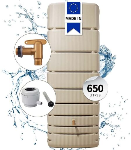 Description générale Le réservoir d'eau mural Slim de 650 litres en coloris sable est une solution élégante et pratique pour récupérer l'eau de pluie dans votre jardin. Son design moderne et peu encombrant permet une installation facile contre un mur, tout en apportant une touche esthétique à votre espace extérieur. Spécifications techniques Capacité : 650 litres Dimensions : 210 cm (hauteur) x 79 cm (largeur) x 52 cm (profondeur) Poids : 36 kg Matière : Polyéthylène renforcé, résistant aux chocs et aux U.V. Coloris : Sable Compatibilité et accessoires Adapté aux gouttières de diamètre 80 ou 100 mm Sortie latérale de 25 mm Livré avec un collecteur filtrant Eco (coloris gris), tuyau et embout de raccordement Robinet PE 3/4" (19 mm) imitation laiton, livré avec contre-écrou et joint Installation La cuve est conçue pour une installation murale simple grâce à son système d'attache inclus. Aucun perçage n'est nécessaire pour le robinet, qui est déjà intégré. Il est conseillé de positionner ...