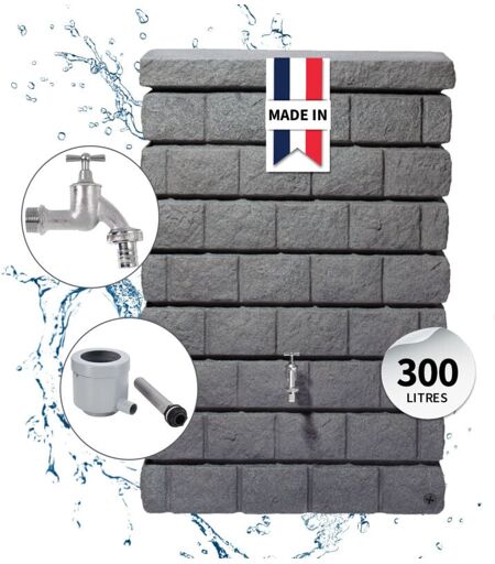 Transformez votre jardin avec le réservoir à eau de pluie GARANTIA ROCKY Junior, alliant esthétique et praticité pour un stockage optimal de l’eau de pluie. Ce réservoir de 300 litres, arborant une finition gris granite et une texture réaliste en pierre, s’intègre harmonieusement dans votre jardin ou terrasse, ajoutant un élément décoratif naturel et fonctionnel. Conçu à partir de matériaux robustes et écologiques, il assure une grande durabilité face aux intempéries, aux rayons UV et aux variations de température extrêmes, garantissant une longévité optimale sans compromettre l'esthétique. Les deux filetages intégrés en laiton (19 mm / 3/4'') facilitent l’installation du robinet chromé fourni et d’autres accessoires éventuels, comme un tuyau ou une vidange de secours, indispensable pour préserver le réservoir durant les mois froids. myToolStore Le kit complet inclut également un collecteur Eco, efficace pour le filtrage des impuretés, empêchant ainsi tout débordement inadéquat. ...