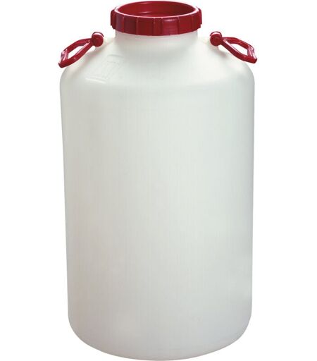Bidon jerrycan, qualité alimentaire, polyéthylène (PE), capacité 25 l, hauteur 520 mm. Produit livré = monté. Hauteur = 520 mm. Poids = 1.53 kg. Coloris = blanc naturel. Matériau = polyéthylène. Diamètre ouverture = 280 mm. Nombre de poignées = 2 pces. Charge max. par poignée = 25 kg. Caractéristiques matérielles = qualité alimentaire. Propriété = résistant aux UV. Type de produit = réservoirs. En polyéthylène de qualité alimentaire. Niveau de remplissage visible. Bidon jerrycan en PE avec orifice de remplissage de 140 mm. ...