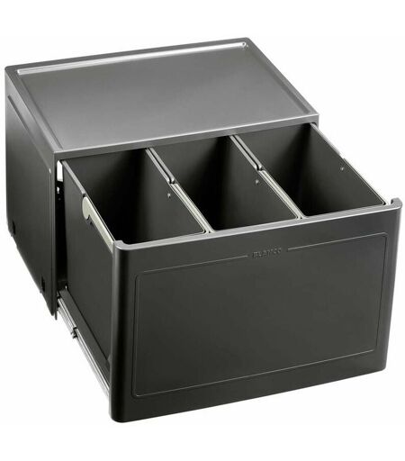 Poubelle intégrée avec coulissement automatique par ouverture de la porte ensemble fabriqué dans un plastique de qualité 3 seaux de 13 l et accessoires de montage montage rapide et facile système stable au design très attrayant guidage souple à billes dans des coulisses pleines poignée fonctionnelle pour une manipulation aisée pour sous-meuble de 600 mm entretien facile des seaux poignée ergonomique Consignes d'installation ouverture automatique, il est nécessaire d’utiliser une porte avec un angle d’ouverture minimum de 100° largeur maximale des charnières de porte 35 mm profondeur de montage 400 mm hauteur de montage 350 mm ...