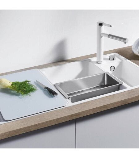 Blanco évier 523477 100x51cm, PuraDur blanc, droit, avec planche à découper en verre