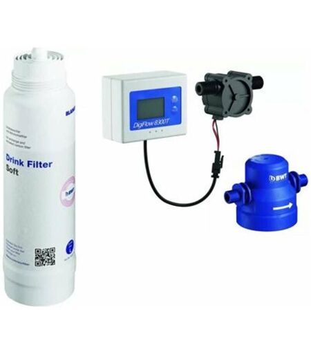 Drink Filter Set Soft L système de filtration d'eau pour batteries BLANCO set pour installation dans un sous-meuble contient une cartouche filtrante à plusieurs degrés Drink Filtre Soft L d'une capacité allant jusqu'à 1800 litres d'eau potable filtrée contient le raccordement à l'eau, la tête d'installation pour maintenir la cartouche et l'unité de commande unité de commande avec écran pour afficher la capacité restante du filtre ...