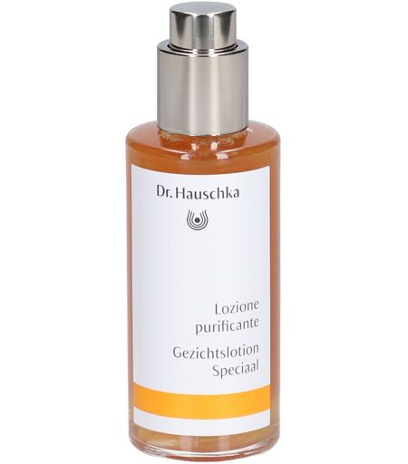 Soin équilibrant quotidien : Lotion Clarifiante Dr. Hauschka. Vaporisez matin et soir votre visage de la Lotion Clarifiante après l'avoir nettoyé ou à tout moment de la journée quand vous en éprouvez le besoin. Sa fine brume composée de plantes médicinales clarifie immédiatement le teint. La Lotion Tonifiante s'utilise par-dessus le maquillage pour le fixer et comme lotion après-rasage. Si votre peau retrouve son aspect normal, utilisez plutôt la Lotion Tonifiante. La Lotion Clarifiante stimule en douceur les forces naturelles de la peau. Elle procure un teint de rose et rayonnant de vitalité. Elle est le soin quotidien tonifiant idéal pour les peaux grasses, impures et à pores dilatés. Sa composition à base d’anthyllide, de calendula et de capucine régule la production excessive de sébum, apaise et agit sur les zones sujettes aux inflammations. Sa composition précieuse à base de plantes médicinales régule et équilibre, en stimulant les fonctions de la peau.Bénéfices 100% cosmétique naturelle, certifiée par NATRUE (certificat) Sans ingrédients de synthèse : parfums, colorants et conservateurs Sans huiles minérales, ni silicones et ni PEG Végane Tests dermatologiques de tolérance cutanée Non testé sur les animaux Matières premières issues autant que faire se peut de cultures biologiques contrôlées ou biodynamiques et/ou du Commerce Equitable ApplicationMatin et soir, vaporiser la Lotion Clarifiante sur le visage, le cou et le décolleté, puis faire pénétrer délicatement par la chaleur des mains.IngredientsAqua, Alcohol, Anthyllis Vulneraria Extract, Calendula Officinalis Flower Extract, Tropaeolum Majus Flower/Leaf/Stem Extract, Aesculus Hippocastanum Bark Extract, Echinacea Pallida Extract, Hamamelis Virginiana Bark/Leaf Extract, Bellis Perennis Flower Extract, Parfum*, Citronellol*, Geraniol*, Linalool*, Lactic Acid. *à base d'huiles essentielles naturelles ...