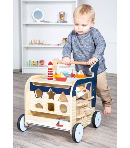 Un voyage de découverte avec la baleine ! Sur cinq côtés jouables, ce chariot de marche en design d'une baleine en bois, nominée pour le ToyAward 2020, offre aux débutants une abondance de jeux et de plaisir d¿apprentissage. ...