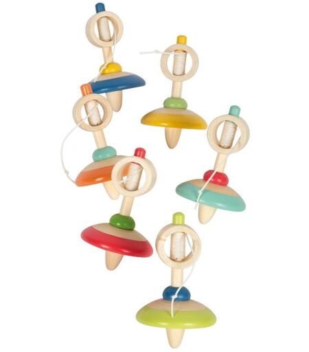 Toupie en bois avec ficelle - Hauteur 9 cm - Vendue à l'unité (couleur aléatoire, selon disponibilité et arrivage). Cette toupie en bois avec lanceur à ficelle rappellera de nombreux souvenirs aux plus grands et ravira les plus jeunes ! La toupie est l'un des jeux traditionnels les plus populaires et les plus répandus. En enroulant la ficelle autour de la ...