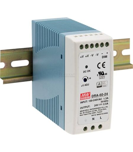 DRA-60-24 Alimentation rail din 24 v/dc 2.5 a 60 w Nbr. de sorties:1 x Contenu 1 pc(s) - Mean Well