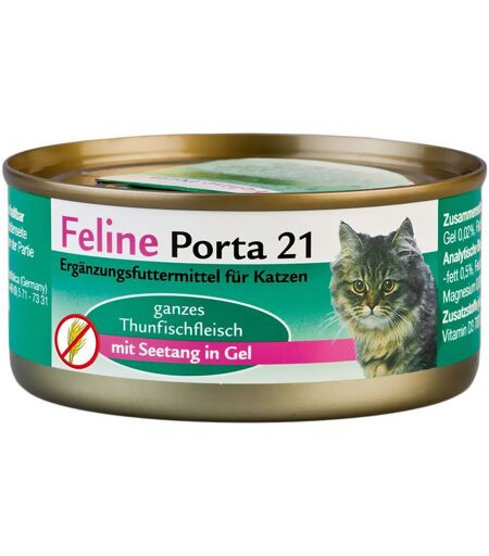 Feline Porta 21 est une nourriture humide de grande qualité pour les chats adultes. Cet aliment est préparé avec des ingrédients naturels, sans sucre ni conservateurs chimiques. Vous verrez aussitôt la différence, dès la première boîte ouverte : la consistance naturelle ne manquera pas de vous convaincre, vous et votre félin ! Les boîtes Feline Porta 21 sont formulées à base de viande de qualité provenant de poulet ou de thon (pêche respectueuse des dauphins), servie en morceaux entiers. Très... ...