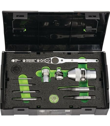 Set de 10 pièces · Jeu de tourne-à-écrou prêt à l'emploi avec forme finement rainurée, utilisé pour dévisser des boulons et des vis cassés avec filetage droit · idéal pour des vis d’un diamètre de filetage de 4 à 20 mm · le kit comprend six tourne-à-écrou · une clé à cliquet · deux porte-embouts ainsi qu’un adaptateur, ce qui le rend prêt à l’emploi · les tourne-à-écrou sont un outil indispensable auquel ni les bricoleurs amateurs ni les professionnels ne peuvent renoncer ...