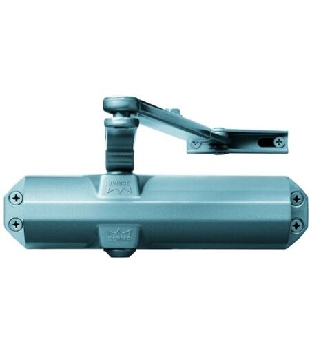 Ferme-porte de la gamme Classic-Line à pignon crémaillère Prévu pour porte standard et coupe feu Réversible droite/gauche Réglage de la force par déplacement du corps et retournement de la charnière du bras ...