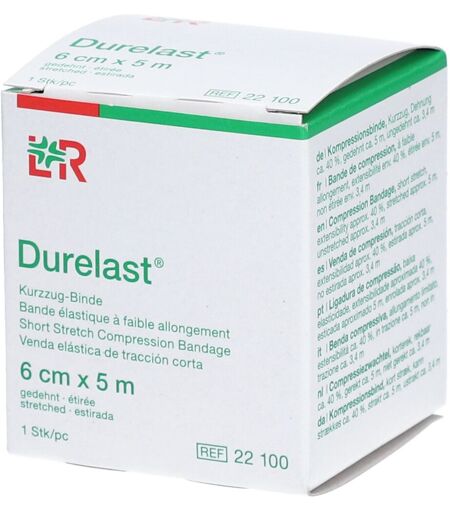 Taille du pansement: 6 cm x 5 m Indication: Bande à extensibilité ultra-courte pour compression forte des membres, notamment en phlébologie et lymphologiepour le soutien et le soulagement en cas d’entorses et de contusions en traumatologie et médecine du sport. Description du produit: La bande à allongement extra court est une bande particulièrement compressive et durablement élastique présentant un allongement très court. Ils servent à la compression forte des extrémités dans le cadre d'un traitement phlébologique, mais aussi pour le traitement d'un lymphœdème aigu et chronique. D'autre part, elle soutient et décharge en cas de distorsions et contusions en traumatologie et en médecine du sport. élastique en longueur (env. 45 %) élasticité durable par des fils de chaîne retors en polyamide texturés tissu maniable avec lisières couleur chair lavable à 95 °C stérilisable à la vapeur d’eau (121 °C), par irradiation et à l’oxyde d’éthylène. Conseils d'utilisation: Lire attentivement le mode d'emploi. Composition: 66 % coton, 34 % polyamide. ...