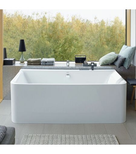 Duravit - Baignoire murale en acrylique rectangulaire à encastrer, 2 dossiers inclinés, 2 places - 180x80x49,5cm - Blanc brillant - P3