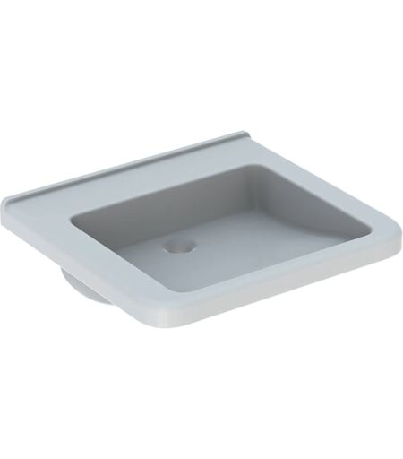 Geberit Renova Confort lavabo 128661000 Numéro d'article 128661000 Lavabo 600 mm sans trou pour robinetterie, sans trop-plein Accessible selon DIN 18040 adapté aux utilisateurs de fauteuils roulants Deux niveaux d'eau dans le large bassin intérieur permettent de ranger les ustensiles dans la zone avant en cas de barrage partiel Zones avant et latérales faciles à saisir grâce à la hauteur de cadre multifonctionnelle, pour une traction et un maintien sans effort Zone de préhension ergonomique des deux côtés par le bas Avec des coins et des bords légèrement arrondis pour des accoudoirs et des zones de support confortables Avec dosseret mural facile à nettoyer Peut être combiné avec la demi-colonne 298510 ou les meubles sous-vasques 808530, 808531 ...