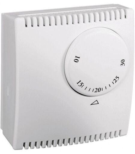 Informations techniques Affichage : non Alimentation (LOV) : sur secteur Baisse de température la nuit : non Capteur à distance : non Charge admissible du contact : 10 A Code couleur RAL (similaire) : 9010 Couleur : blanc Courant de contact : 10 A Cycle de commutation (LOV) : programme journalier Dimensions produit, hauteur : 3.1 cm Dimensions produit, largeur : 7.1 cm Hystérésis (détails) : 0.8 °C Longueur : 7.1 cm Modèle antigel : non Réglage de température, valeur haute : 30 °C Réglage de température, valeur min. : 10 °C Tension de fonctionnement : 230 V Type de fonctionnement (mécanique/électronique) : mécanique Type de montage : montage apparent (en saillie) Thermostat d'ambiance Grande fiabilité de commutation et faible différnece de température à la commutation pour cet article d'entrée de gamme. Points forts Plage de réglage : 10 à 30 °C Passage à l'heure d'été/d'hiver Fonctionnalités Différence de température à la commutation : 0,8 °C pour une tolérance de ±0,2 °C Contact ...