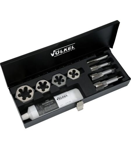 Cet ensemble pratique contient les tailles de filetage les plus courantes utilisées dans le secteur sanitaire. Idéal pour la découpe et le nettoyage des filetages endommagés. L'ensemble est livré avec un lubrifiant adapté pour un travail fluide et efficace. ...