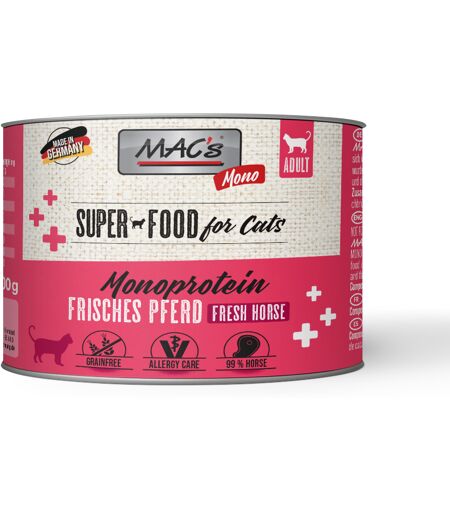 Les boîtes MAC's Mono constituent un aliment humide à faible potentiel allergène et ne contiennent qu'une seule sorte de viande. Elles sont faciles à digérer et ont été spécialement formulées pour les chats adultes qui souffrent d'allergies ou... ...