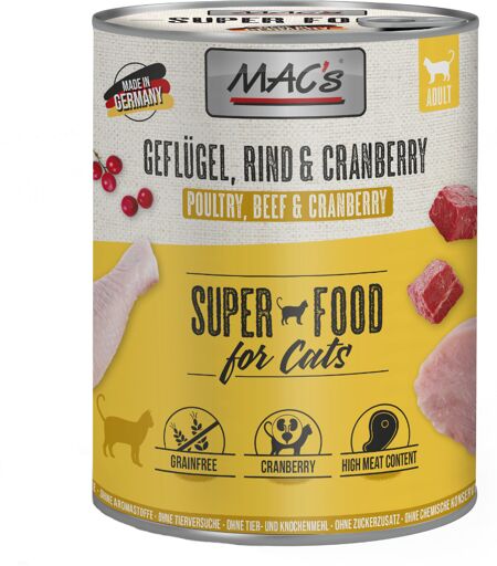 12x800g MAC's lot mixte volaille, cranberries + canard, dinde, poulet - Pâtée pour chat