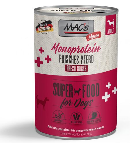 6 x 400 g MAC’s Adult Mono au cheval, nourriture humide pour chiens