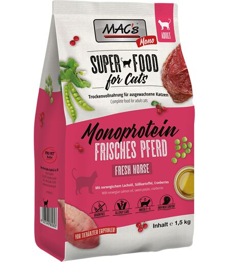 1,5kg MAC's Superfood for Cats Adult Monoprotein Cheval nourriture pour chats sèche