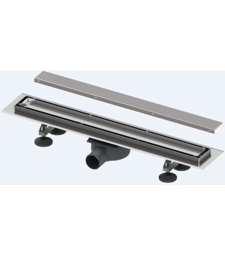 set de rigoles de douche TECE Longueur nominale : 900 mm Longueur totale L : 900 mm Dimension visible après installation : 840 mm Largeur du corps : 135 mm Largeur visible après installation : 75 mm Longueur de l'évidement du carrelage à l'intérieur : 814 mm Largeur de l'évidement de carrelage à l'intérieur : 49 mm Hauteur de l'évidement du carrelage à l'intérieur : 13 mm Kit de gouttière de douche pour raccordement aux canalisations d'égout DN 50, à encastrer dans la chape, avec bride adhésive et manchon d'étanchéité pour raccordement aux joints composites, avec couvercle pour grille réversible "2 in 2000 " (aspect inox brossé ou à carreler). Composé de : • Canal corps avec bride adhésif en poli Inox , la matière 2000 0,4301 (304) • Pièce de raccordement centrale pour le raccordement du drain • Vidange DN 50 avec sortie latérale, orientable à 360°, hauteur de joint d'eau 25 mm, 1930 l/s (selon DIN EN 1253) • Manchon d'étanchéité pour le raccordement sur site à la bride du canal et pour l'incorporation dans le joint composite • Pieds de montage pour l'alignement en hauteur et la fixation de la position du caniveau, réglage en hauteur en continu jusqu'à 125 mm (bord inférieur des pieds de montage au bord supérieur du caniveau) • Couvercle grille réversible "2 in 2000 " à insérer dans le corps du caniveau, en Inox , chargeable selon la classe de charge K3 - charge d'essai 300 kg, à utiliser soit comme couvercle en acier inoxydable brossé, soit comme évidement de carrelage pour le chantier collage de carreaux avec de la colle élastique par ex. B. adhésif silicone ou résine époxy ...