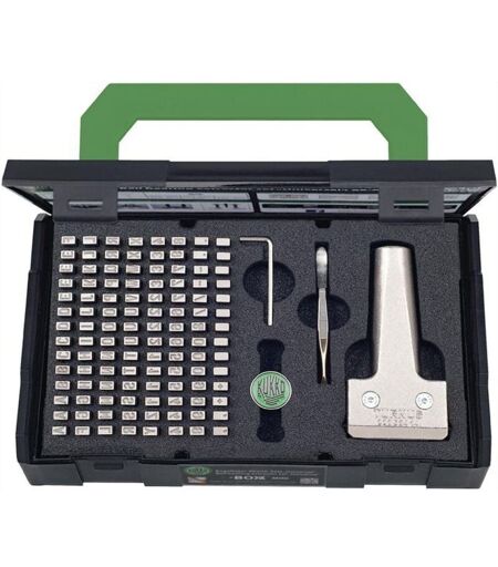 Chiffres et lettres de frappe (types) interchangeables Ecriture normale 0-9 et A-Z avec support et logement de type de tampon fraisé avec précision Le support permet de juxtaposer plusieurs types. Caractéristiques Contenu : 113 pièces Hauteur de caractères : 5 mm Nombre de logements de types : 8 pièces Marque : KUKKO Exécution : avec porte-types(kukko Jeu de chiffres/carnets de frappe 333 113 pièces avec porte-caractères - 333-050 est un produit de la gamme de la société kukko dans la catégorie Nordwest Katalog > Handwerkzeuge > Kennzeichnungen und Beschriftungen > Schlagbuchstaben und -zahlen > Schlagzahlen/-buchstabensätze!) ...