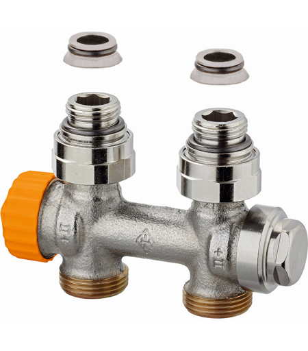 Heimeier Vanne thermostatique Multilux Eclipse 3865-02.000 Rp 2000 / 2, passage, pour système à deux tuyaux, bronze nickelé