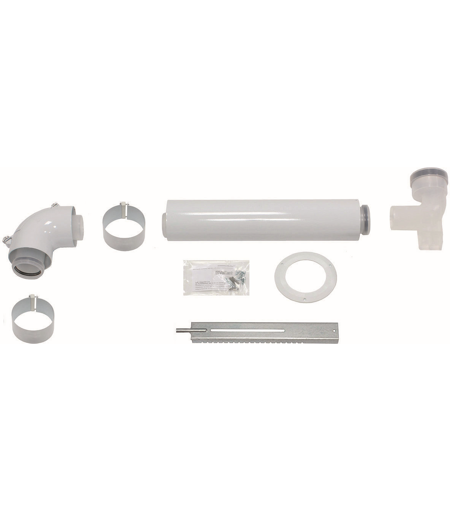 Kit de connexion de base Vaillant 303920 pour conduit de fumée dans gaine pour mode de fonctionnement indépendant de l'air ambiant ou dépendant de l'air ambiant (n° d'article supplémentaire 303924 requis) conduit air/évacuation concentrique (60/100 mm PP) Arc de révision 60/100 mm Extension de 87 degrés 60/100 mm Arc de support de 0,5 m avec rail de support, pinces de raccordement et rosace ...