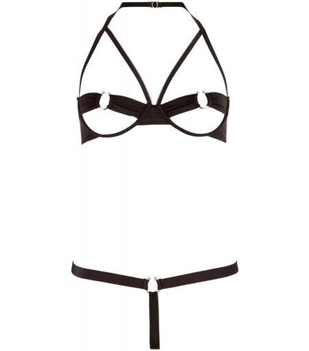 Dévoilez votre sex-appeal avec cet Ensemble 2 Pièces Minimalist de Cottelli Collection ! Cet ensemble séduira votre partenaire et vous promet des soirées extrêmement torrides. Le soutien-gorge ouvert laissera apparaître vos seins et comporte un anneau en forme de fer à cheval qui viendra délicatement entourer vos tétons pour un effet ultra-sexy. Le string élastique comporte également un petit fer à cheval sur le devant tenu par de fines bandes qui laissent découvrir partiellement vos parties intimes, excitant ainsi terriblement votre partenaire ! Matière : 85% Polyamide, 15% Elasthanne. Tailles S, M, L. ...