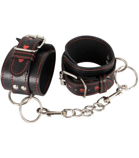 Découvrez lesMenottes (https://www.sexyavenue.com/fr/menotte-liens-160)Noires CÅ“urs de la marque Bad Kitty (https://www.sexyavenue.com/fr/marques/bad-kitty_506)et pimentezvos moments érotiques avec votre partenaire lors de vos séances de bondage ! Faites ressortir le Dominant qui sommeille en vous en emprisonnant les poignets de votre partenaire ! Vos jeux BDSM n'en seront que plus excitants avec ces menottes en simili-cuir noir et des petitscÅ“urs rouges au niveau des sangles d'ajustement. Avec cet accessoire de bondage, osez goûter au monde du BDSM o๠vous pourrez assouvir toutes vos envies... Reliées par une petite chaîne, votre soumis sera entiàrement à votre disposition et vous pourrez le contrôler comme bon vous semble ! Inventez des scénarios o๠le Maître domine, votre partenaire n'aura nul autre choix que de se plier à vos quatre volontés ! Ajustables et mesurant 17 à 27 cm de longueur, vos menottes conviendront même aux petits poignets. En polyuréthane doux pour un contrôle total en toute sécurité ! ...