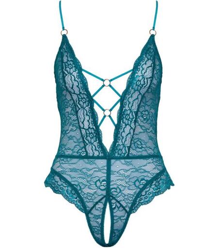 Je suis à l'origine de votre passion. Je suis votre body ouvert dentelle florale bleu de la marque Cottelli Collection ! D'une élégance exquise et d'un érotisme à toute épreuve, je mets à votre disposition ma sublime dentelle florale à la délicieuse couleur bleu canard pour capturer le désir de votre partenaire. Mon décolleté en V plongeant est ornementé de fines lanières entrecroisées avec anneaux métalliques incorporés et je vous gratifie du même ornement à l'arrière pour deux fois plus de sensualité. Enfin, mon ouverture à l'entrejambe et aux fesses fera le petit bonheur de votre partenaire d'ores et déjà sous l'emprise de votre charme... Composition : 90% Polyamide, 10% Élasthanne ...