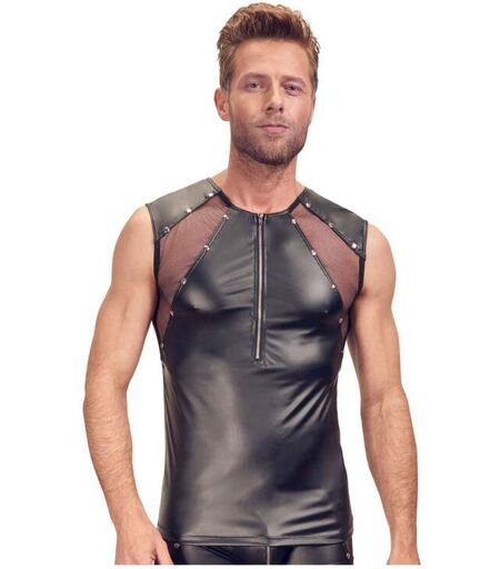Montrez vos muscles et votre torse avec ce magnifique Débardeur Bi-Matière Wetlook & Résille Noir de la marque Svenjoyment.   Sexy et très près du corps ce T-shirt sans manches sera comme une seconde peau. Son mélange de matière entre opacité du wetlook et transparence de la résille séduira en toute occasion votre partenaire. Souple et doux au toucher, ce t-shirt est confortable et très agréable à porter. Il sera votre arme de séduction massive pour rendre fou de désir votre moitié et jouer la carte de la séduction.   La fermeture éclair à l'avant permettra de régler votre décolleté et les clous plats autour de votre buste viennent habiller sensuellement vos muscles...   Composition : 90% Polyester, 10% Spandex - Résille : 90% Polyamide, 10% Spandex   Tailles S, M, L, XL, 2XL. ...