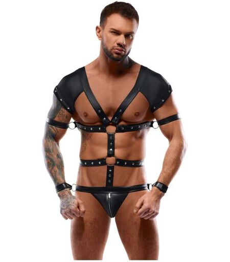 Envoûtant et séduisant. Je suis votre body harnais & menottes noir de la marque Svenjoyment. Conçu en wetlook, je saurai retenir l'attention de votre cher et tendre, car je brille de mille feux grâce à mon étoffe et mon design spectaculaire. Je possède plusieurs anneaux assez grands et des effets clous captivants. Ma fermeture éclair au niveau de la poitrine et de sensuelles sangles de contention avec fermetures autoagrippantes, très douces et extensibles, vous apporteront un grand confort. Grâce à moi, réalisez vos plus beaux jeux de bondage et régalez votre partenaire comme bon vous semble. Comme vous pourrez le constater, ma fermeture très séduisante sur votre partie la plus intime est une invitation à vivre, avec votre corps, une de vos nuits les plus déjantées. Composition : 90 % polyester, 10 % élasthanne ...