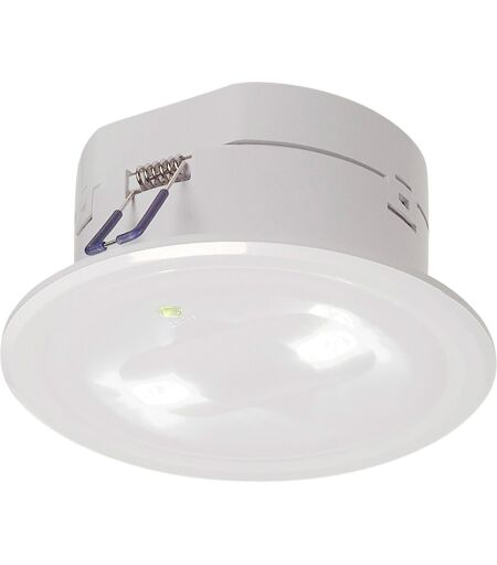 P-LIGHT pour utilisation comme éclairage de secours, adapté au montage au mur et au plafond. Chacune des deux têtes rigides est équipée d’une LED 2W. Les luminaires de sécurité sont équipés de deux accus Ni-Mh intégrés et d’une fonction de test automatique. Le temps de fonctionnement de secours du luminaire est de trois heures. Le luminaire peut être utilisé en commutation permanente/commutation de secours. Branchement électrique directement sur tension secteur 230V. La gamme P-LIGHT est disponible en plusieurs variantes.Données techniques: Nom du produit: P-LIGHT, Couleur: blanc, Matière: ABS, Puissance en watts: 5 W, Lumineux/watt: 24 lm/W, Lumen: 120 lm, Température de couleur: 6000 Kelvin, Angle de rayonnement: 90 °, CRI: 70, Différentes sorties lumineuses: 1, Classe de protection: II, Code IP: IP 20, Montage: Encastrement, Détails de montage: Plafond, Forme: rond, Hauteur: 6.2 cm, Diamètre: 12.5 cm, Forme de découpe: rond, Diamètre d'encastrement: 9.5 cm, Profondeur d’encastrement: 7.5 cm, Sortie lumineuse: direct, Distribution de l'intensité lumineuse: symétrique, Durée de vie: 25000 h, Tension nominale primaire: 220-240V ~50Hz, Poids net: 0.41 kg, Valeur nominale de l'efficacité lumineuse: 24 lm/W, Consommation pondérée: 5 kWh/1.000h, Données LXXBXX: L70B50, Angle de rayonnement: 90 ° ...