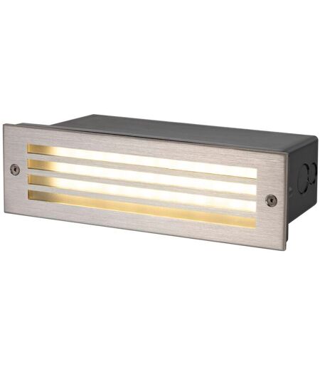 Vous souhaitez éclairer des escaliers, des entrées, des rampes ou des chemins sans éblouir ? L'applique encastrée BRIC K Mesh produit un éclairage conçu pour le guidage. Avec une durée de vie de 50 000 heures et grâce à son indice de protection IP65, elle est extrêmement durable et résiste aux intempéries. Le corps de la lampe restant entièrement encastré dans le mur grâce à un pot d'encastrement, il n'y a aucun risque d'accident. Les ouvertures sur le côté ou à l'arrière, généralement fermées, garantissent la propreté du boîtier en cas d'encastrement dans des murs en béton.Données techniques: Nom du produit: BRICK, Couleur: acier inoxydable, Matière: Acier inoxydable 304, Puissance en watts: 5 W, Flux lumineux: 150 lm, Température de couleur: 3000 Kelvin, IRC: 80, Code IP: IP65, Montage: Encastrement, Forme: rectangulaire, Longueur: 26 cm, Largeur: 11 cm, Hauteur: 7.6 cm, Longueur d'encastrement: 25.2 cm, Largeur d'encastrement: 7.5 cm, Profondeur d’encastrement: 10.7 cm, Indice de résistance aux chocs: IK08, Résistance aux chocs: 5 joule, Tension nominale primaire: 220-240V ~50/60 Hz, Courant / tension secondaire: 500 mA, Température ambiante: -20 - 40 °C, Classe d'efficacité énergétique: C, Poids net: 1.24 kg, Durée de vie: 50000 h, Nombre de luminaires sur LS B16A: 64 St., Hauteur du courant d'appel: 15 A, Durée du courant d'appel: 200 µs, Température sur le verre (émission lumineuse): 60 °C, Classe de risque: 1 ...