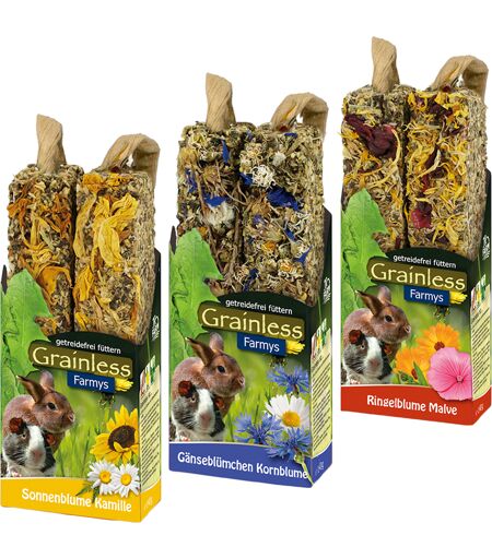 Le plaisir de grignoter riche en substances vitales, sans aucun regret : les délicieux Farmys sont également disponibles sans céréales ! Les lapins, cochons d'Inde et chinchillas, en particulier, consomment rarement des céréales à l'état sauvage.... ...