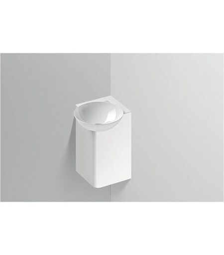 Alape WP.INSERT5 1x lavabo d'angle rectangulaire L/H/P 355/471/350 mm vasque ProShield blanc cuvette centrée avec trou pour robinet sans trop-plein Corps : Acier chromé laqué poudre blanc Vanne à tige, capuchon de vanne chromé siphon bouteille Ø 63mm kit de fixation inclus ...