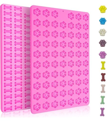 Dog Baking Mat Set Of 2 Mini Dog Bone Shape+Footprint Shape,Baking Mat For Dog Treats,Chocolate,Cookies,Ice Cubes,Candy
