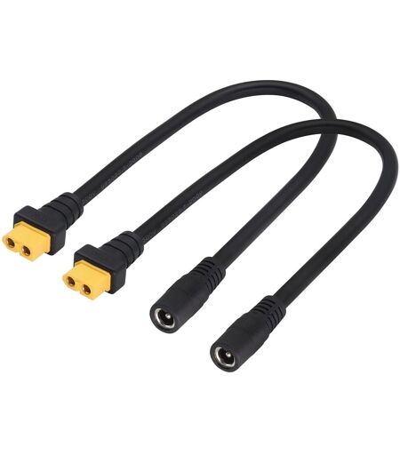 Quantity: (2 pack) Dimensions: Length (30 cm/12 inches) Colour: Black.Connector 1: XT60 Female Jack Cable, Connector 2: DC Female Jack Cable 5.5mmx2.1mm.Voltage: 1-24 V, Current: 10A, (wire diameter 2 x 1.5 m¿) copper wire.You can perform field repairs with a TS100 soldering iron with this cable and XT60 Lithium Battery.Product Application: XT60 to DC Adapter Cable for TS100 Soldering Iron, Flywheel Power Cord for FPV Multi Rotor Drone. ...