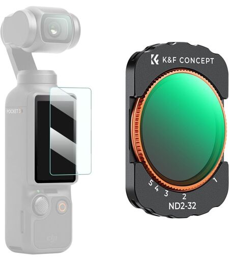 [Compatible with DJI OSMO Pocket 3 Drone]: It is a variable ND filter often used for DJI OSMO Pocket 3 when shooting outdoors. The filter can be adjusted from ND2 to ND32, 1-5 f-stops light reduction. Neutral density filter reduces the amount of light that reaches the film without altering the color. Ideal for photographing landscapes and nature. The ND2-32 filter is often used for video.[High Quality]: The filters are made of high-end AGC optical glass, with a 28-layer nano-coating that balances colors, reduces unwanted reflections and protects the lens from water, scratches and oils. Both glass sides of the filter are used polishing technology to balance the light penetration path and ensure image quality.[ Very Light & Slim]: Filter frames/frames are made of aluminium. Lightweight, the weight does not disturb the carrycot. It does not cause the drone to be overweight. The filter is thin, the thickness is only 2mm. The nd filter is thinner than the DJI filters, and turning on and off does not affect the nacelle lens to ensure perfect storage.[Easy to Use]: The magnetic attachment design is perfectly matched to the base of the drone nacelle. It is a quick system so the filter is easy to put on and remove. Once in place they do not generate any vibration and they hold very well.[No Glares]: The filter surface is black treated to minimize reflection and reduce impact on the image. A tempered film is provided that can better protect the screen from bumps and scratches.K&F; CONCEPT is the world's No.1 brand in terms of lens filter online sales volume among camera-accessory-focused brands. (K&F; CONCEPT is the #1 brand of photography accessories in terms of sales of lens filters across the entire online network in the world) Source: Euromonitor, 2024 data ...