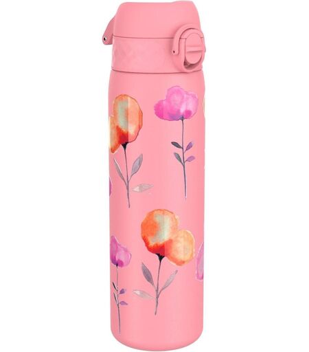 Stainless Steel Water Bottle,600ml,Non-Insulated,Leak-Proof,Easy To Open,Secure Lock,Dishwasher Washable,Carry Handle,Durable,Stainless Steel,3d Pink Flowers Design