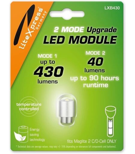Lxb430 Led Upgrade Module 2 Modes 430 Or 40 Lumens Only For Maglite 2 C/D Flashlights