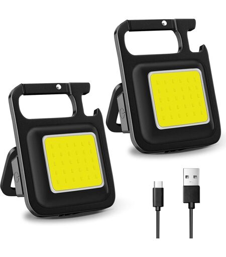 2 X Mini Rechargeable Flashlight,Mini Portable Work Light 800 Lumen Cob Key Ring Lamp With Bottle Opener For Camping,Repairs