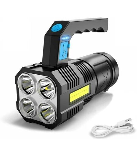 SUPER BRIGHT FLASHLIGHT This led flashlight is a high intensity wick with more light; The radiation distance is more than 500m, 30% brighter than other ordinary flashlights, easily illuminate a whole room or focus on objects.[Waterproof & Multiple Modes]Our waterproof design flashlight can be used in rainy days, no worries about rain and water and with 4 lighting modes (High/Low/Strobe/Side Light). It can be used as a front flashlight or a side light as a table lamp.USB RECHARGEABLE Built-in 1200mAh rechargeable lithium battery, this USB rechargeable flashlight is convenient to be used with power bank, computer and other power devices, real-time power display (25%/50%/75%/100%) to keep track of battery power, and charge indicator function.MULTIPLE USES Our LED flashlight is perfect for outdoor camping, hiking, fishing, sailing, riding, power outages, emergencies, targeted searches or general home use, etc. to meet all your lighting needs.PORTABLE & PERFECT GIFT This portable led flashlight is easy to carry with you as a rescue, fits in your pocket, purse, drawer or car compartment. And it is also a perfect gift for family and friends. ...