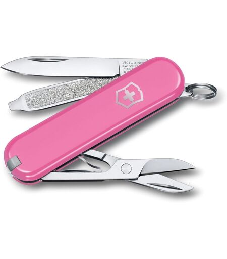 CLASSIC SD: acclaimed by everyday adventurers for over a century. It combines bright colors and stylish functionality.A DAILY HERO: The Victorinox Swiss Army Classic SD pocket knife is not only beautiful, it is also perfectly equipped to complete everyday tasks with ease. It includes a small blade, scissors, nail file, screwdriver, ring, toothpick and tweezers.COLORFUL AND BOLD ¿ Choose your Classic SD to suit your style with our bold range of colors, from bright Mango Tango Orange to pretty Cherry Blossom Pink.SWISS HIGHEST QUALITY: Victorinox stands for craftsmanship and innovative design. We draw on 130 years of experience to produce iconic, high-quality knives, watches, luggage and fragrances.SPECIFICATIONS: Dimensions: 58mm/2.3"" long × 18mm/0.7"" wide × 9mm/0.4"" high. Weight: 21g/0.7oz Rib material: ABS / Cellidor. Colour: Cherry Blossom. Item number: 0.6223.51G ...