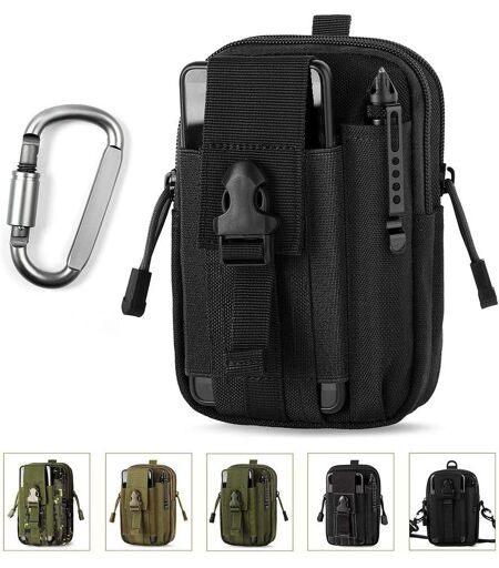Strong and durable: Made of 1000D Cordura nylon, high strength, it is not easy to damage, not fade after washing, top quality and cool look.Multifunctional: MOLLE tactical bag design, can be used as a military bag, tool bag, or belt bag, it has 2 main zipper pockets, an open front pocket, 1 pen holder, 2 inner pockets, and a key hook.With a carabiner: you can attach it to your backpack, cenduce, tactical vest etc, as a perfect equipment for outdoor activities: experiments, camping, hiking, mountaineering etc.Practical: can place your phone (less than 6 inches), key loop, pen, small cards, and some other things. It is small (L*W*H: 7.1*5.3*1.9 inches) but very convenient for daily use.If you have any questions about the products, please feel free to contact us by email, we can answer you and summarize within one working day. ...
